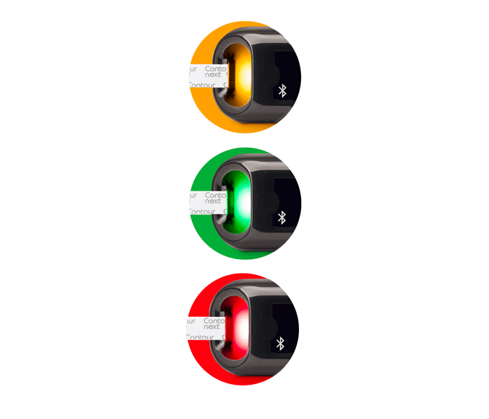 SmartLIGHT® funktionen giver dig en øjeblikkelig indikation på, om dine blodsukkerresultater er indenfor (grøn), over (gul) eller under (rød) dit målområde.1†